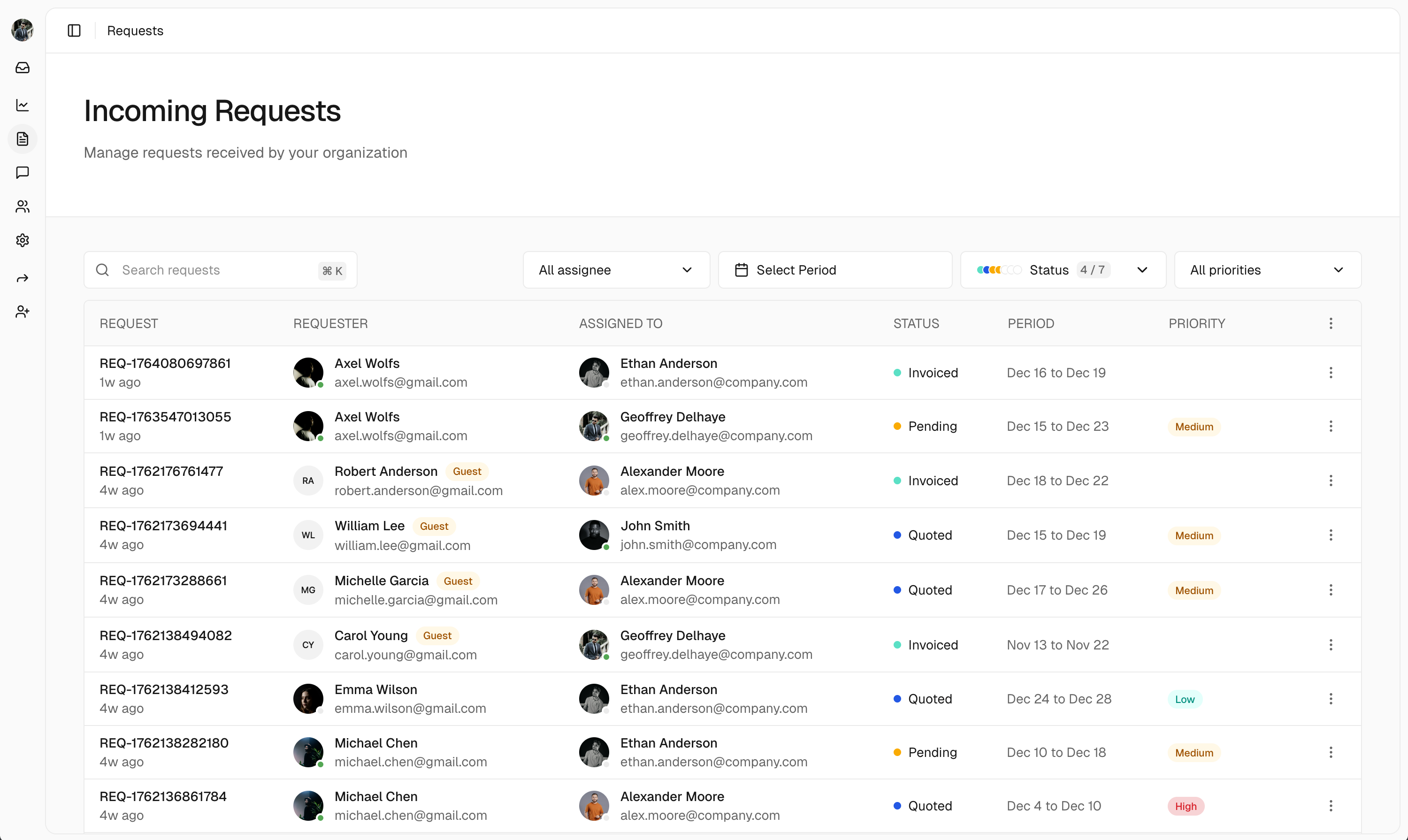 Track and respond to every request from a single dashboard. No more switching between email, phone, and spreadsheets.